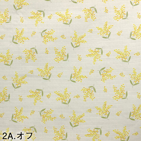 日本製 Mimosa柄広幅ダブルガーゼ生地 ミモザのモチーフをちりばめたプリント 生地のベースは格子柄になります ミモザの大きさは横幅約4cm 大人向けにも使いやすい落ち着いた色展開です。