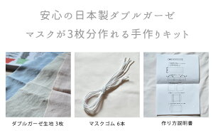 マスク手作りセット 3枚分 日本製 和晒ダブルガーゼ マスクキット 3枚組 大人用 男性用 女性用 子ども用 子供用 キッズ用 手縫い可能 洗える ガーゼマスク 布マスク 無地 ブルー ピンク ベージュ はぎれ 生地 マスクゴム 夏にも ウイルス 対策 在庫あり