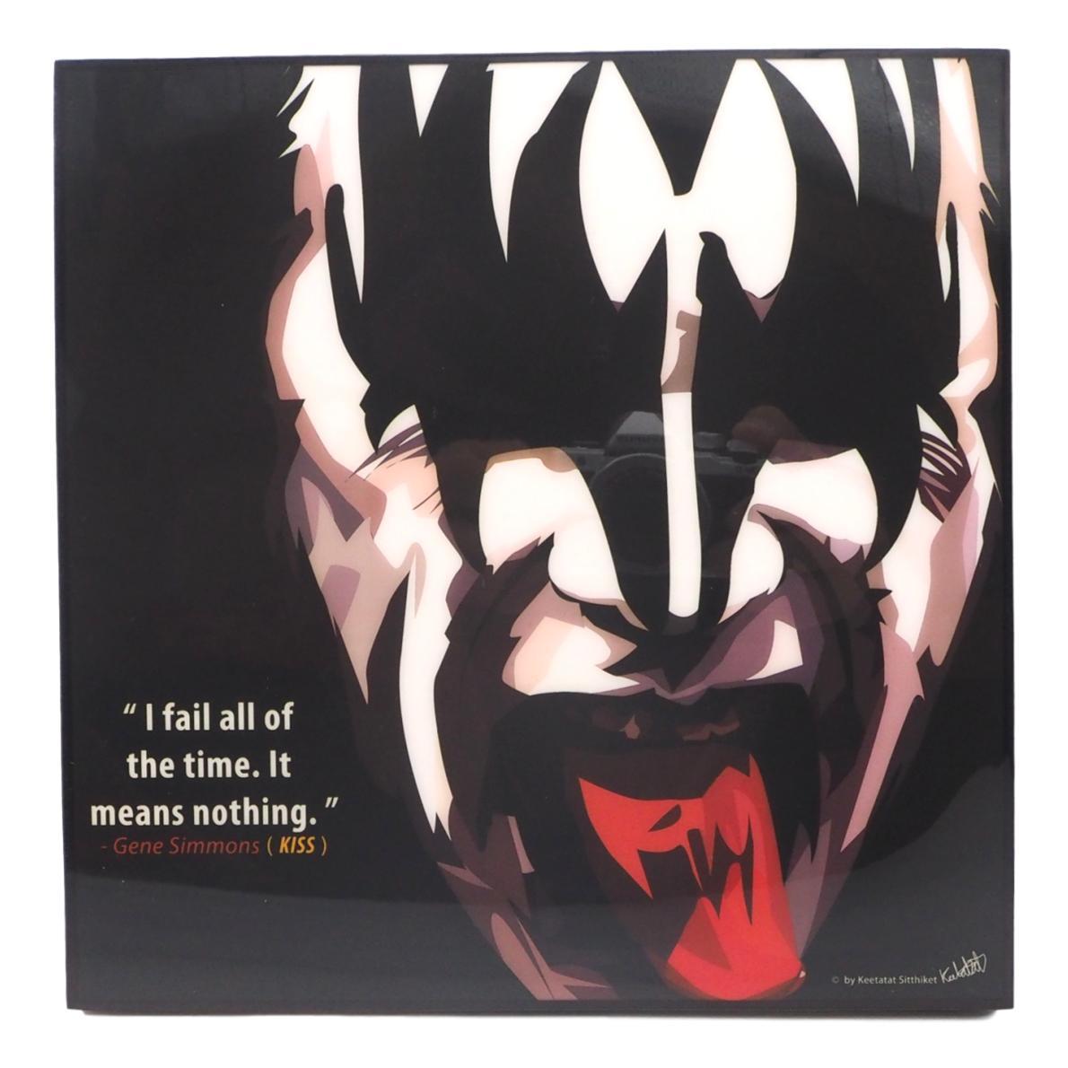 送料無料 ジーン・シモンズ Gene Simmons キッス KISS アートパネル 壁掛け 据え置き 正方形 25センチサイズ 壁掛けフック付き アーティスト POPパネル Keetatat Sitthiket キータタット シティケット