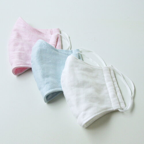 素材 マスク本体、綿100% 内容量 1枚 カラー ピンク、水色、白 サイズ 顎から鼻にかけての高さが約11.5cm。