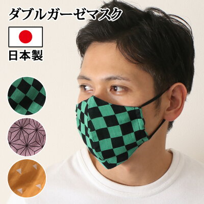 2点以上でクーポン対象200円OFF! 送料無料 【日本製】和柄 ダブルガーゼマスク マスク 洗える 大人 布マスク エコマスク ガーゼ 二重 繰り返し 使える 国内生産 綿100% 鬼退治 人気 アニメ 漫画 キャラクター 市松 麻の葉 鱗 男女兼用 ハロウィン おうち メール便