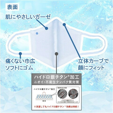 繰り返し洗濯してもハイドロ銀チタンの機能性持続する高い耐久性が特長の洗えるマスクです。
