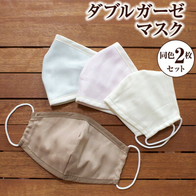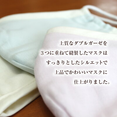 マスク ガーゼ 二重ガーゼ 綿100% 淡いカラー エレガント 立体縫製 洗濯可ダブルガーゼマスク(同色2枚セット)(大人用のみ)【メール便 代引き不可】
