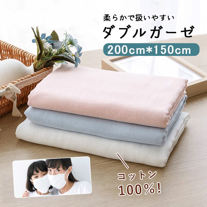 ダブルガーゼ 生地 あす楽 手作りマスク用ガーゼ ホワイト 2m*1.5m ダブルガーゼ 綿 100% コットン ダブルガーゼ 二重ガーゼ ガーゼ 無地 マスク用 てづくりマスク 二層ガーゼ 手作り 【ゴムなし】